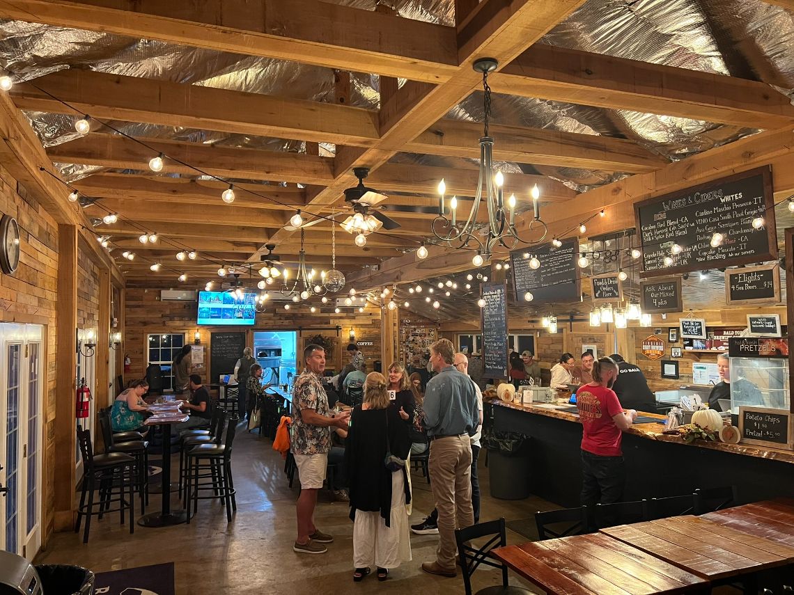 At the top of the hill sits Bald Top Brewing Company, Virginia’s first historic farm brewery and a beloved destination for locals and travelers alike. Known for its rustic farm ambiance, scenic outdoor seating, and family-friendly atmosphere, Bald Top offers a wide variety of craft beers and wines from around the world, to be savored with hand-tossed, wood-fired pizza, farm ingredients and more from its full service, onsite restaurant, “Scratch.”Â